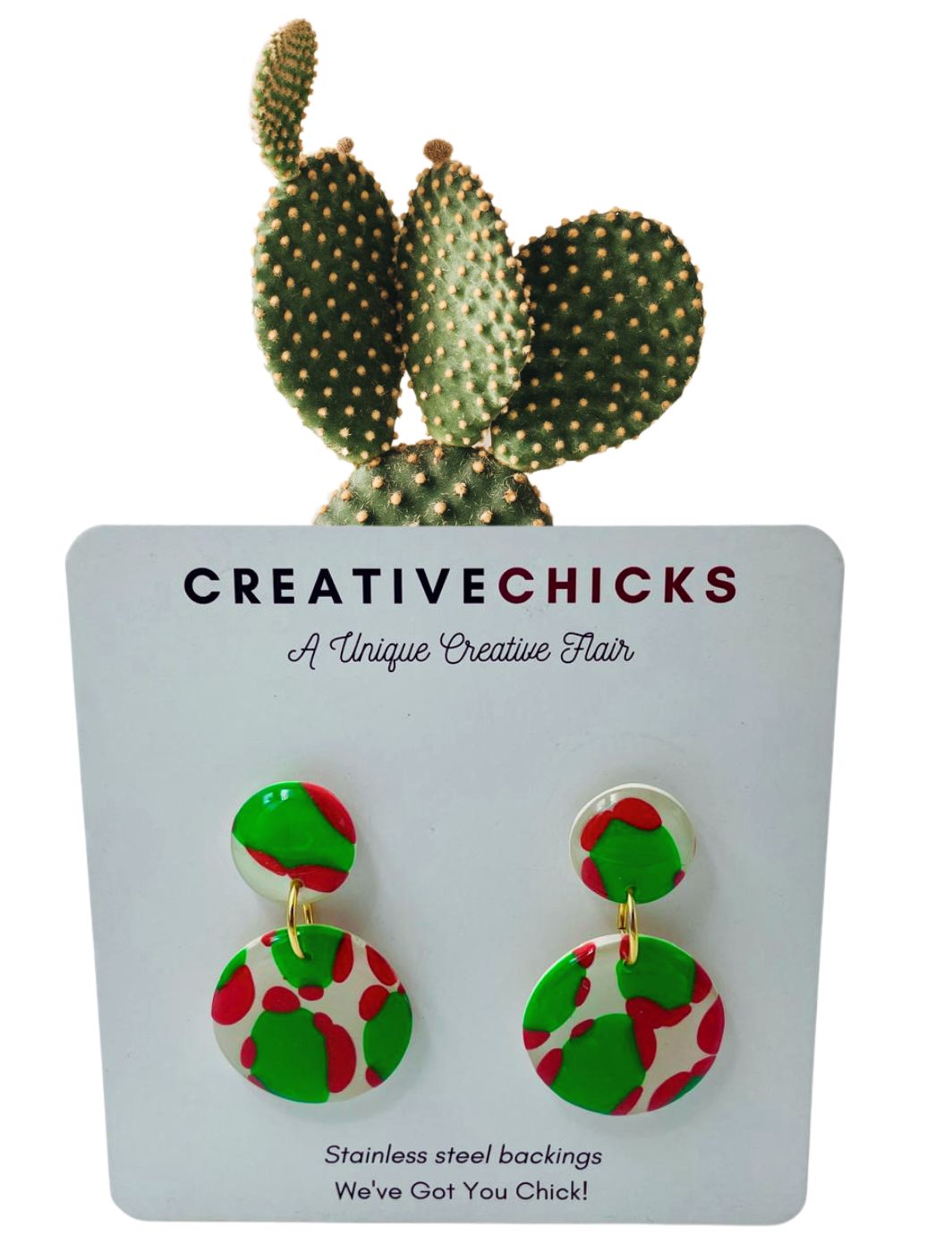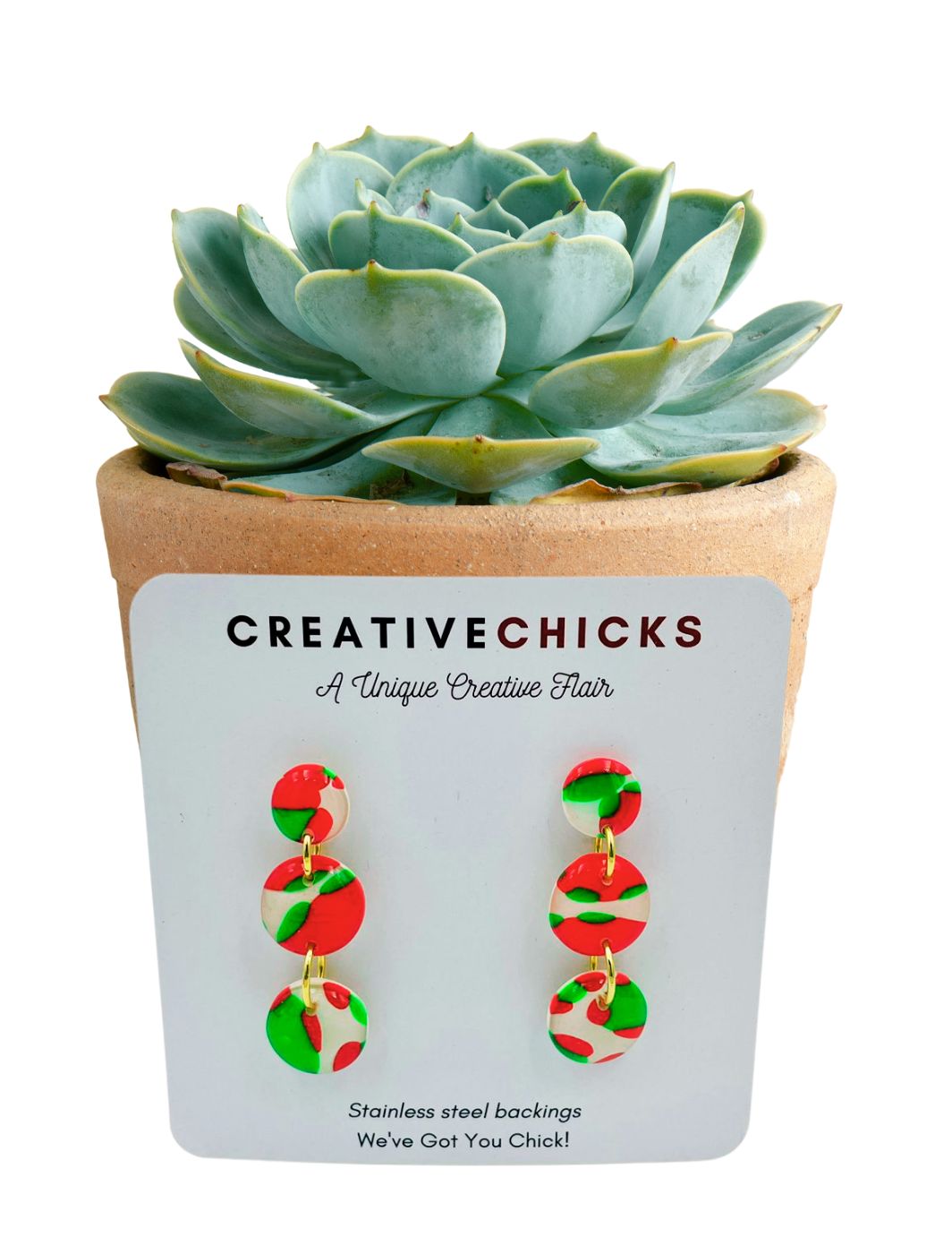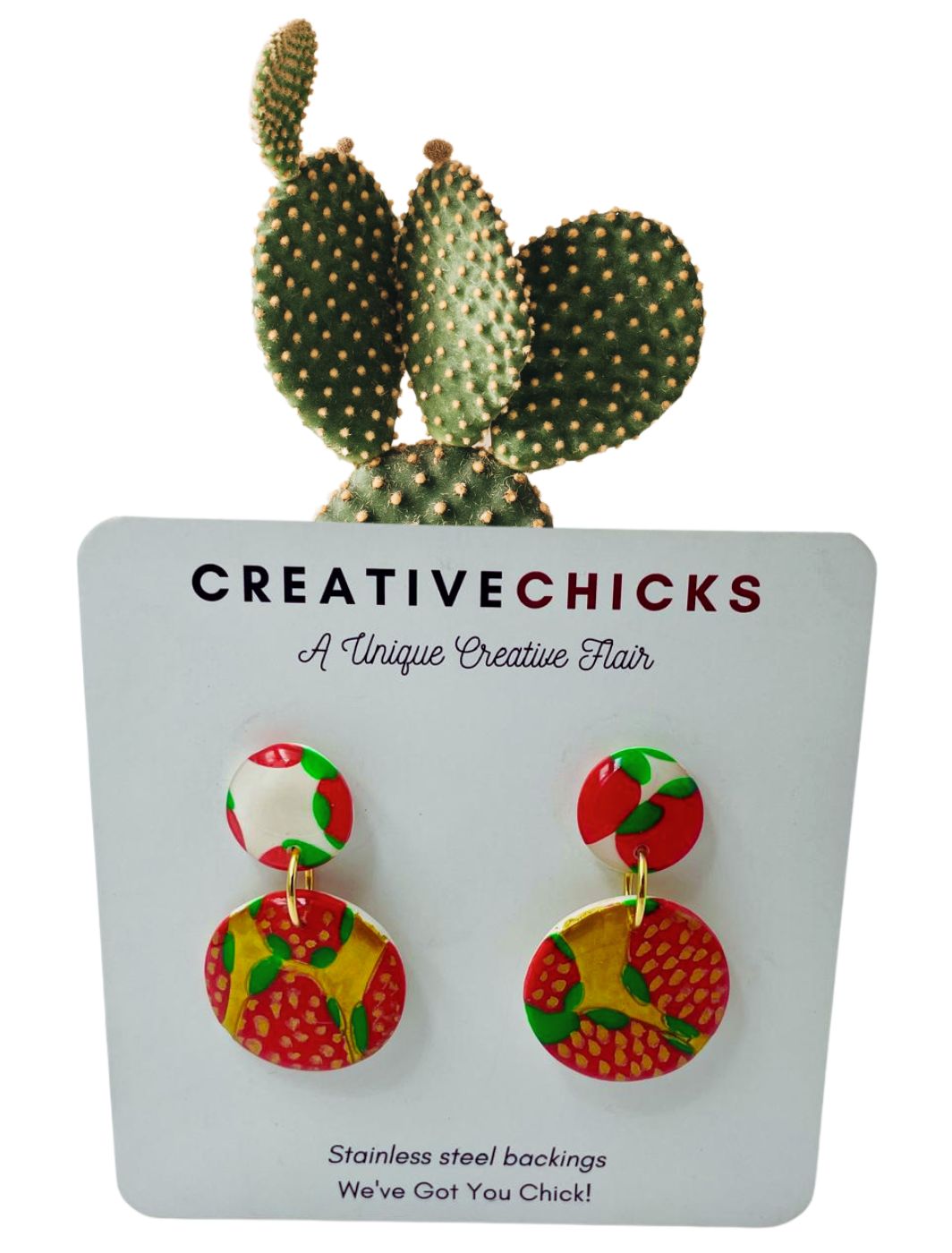 Clay Earrings, Pink Succulent With Stripes Medium1 × R150.00